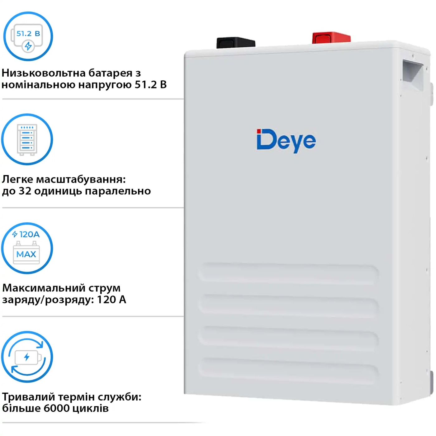 Якщо вам потрібен надійний акумулятор для сонячної станції або резервного живлення, DEYE SE-F5 Plus — один із найпрактичніших варіантів: безпечна LiFePO4-технологія, ємність 5.12kWh і довговічність до 6000 циклів роблять його вигідною інвестицією. Доставка по Києву та всій Україні. Перед тим як замовити, ви можете переглянути відгуки, вивчити фото та переконатися, що рішення підходить саме вам — від домашньої автономії до масштабованих систем зберігання енергії.