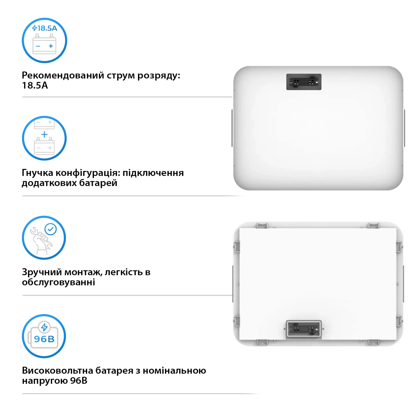 Другой заметной чертой является номинальное напряжение в 96 В, что позволяет этой аккумуляторной батарее быть частью сложных и мощных систем энергоснабжения. Соответственно, номинальная емкость в 37 Ач делает ее крайне вместительным инструментом для хранения больших объемов электроэнергии. Это особенно ценно для предприятий и частных домовладений, где стабильное и надежное энергоснабжение является ключевым фактором.