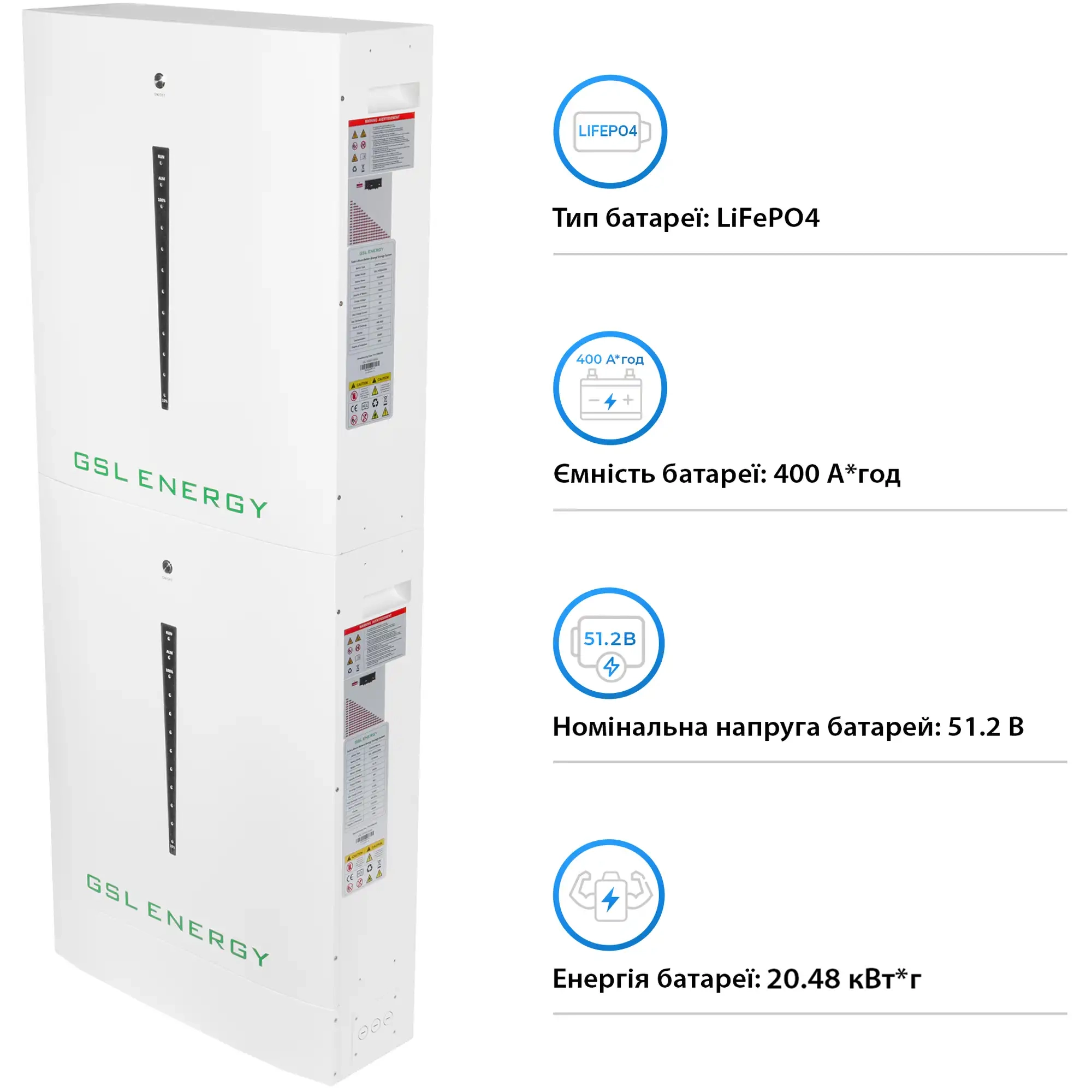 GSL 2xHESS51200A 51.2V 400Ah 20.48kWh — акумуляторна батарея для тих, хто обирає енергонезалежність