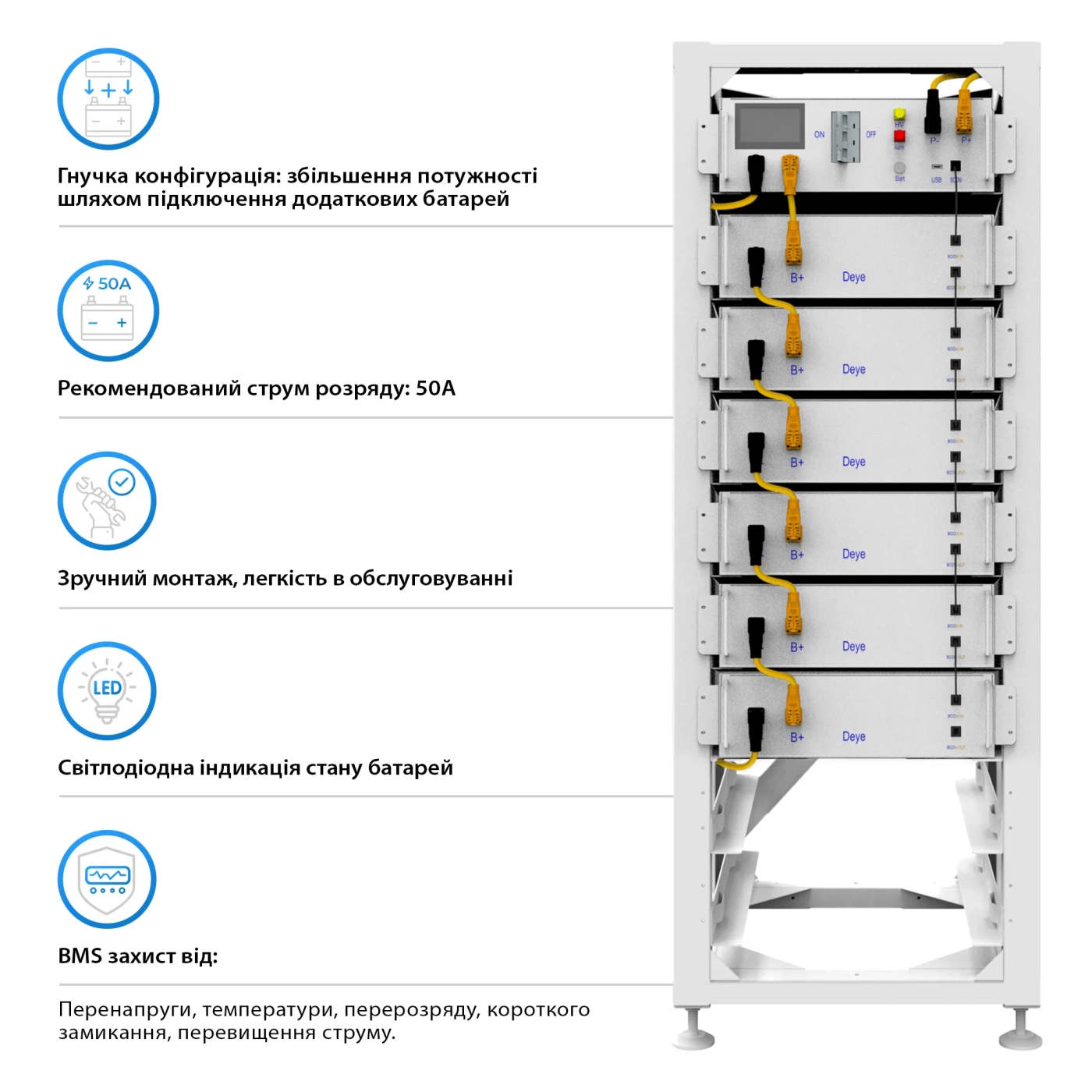 Купить Блок батарей Deye BOS-G6 30.72kW – значит обеспечить надежность и безопасность в сфере хранения энергии