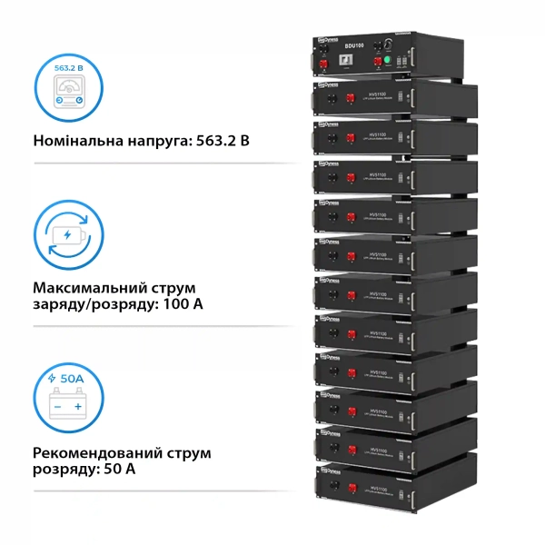 Якщо ви хочете купити блок батарей ESS Dyness HV51100-11 56.32kW у Києві, замовте його прямо зараз на нашому сайті. Ми пропонуємо вигідні ціни, швидку доставку по всій Україні. Не пропустіть шанс зробити ваш будинок або бізнес більш енергоефективним та незалежним!