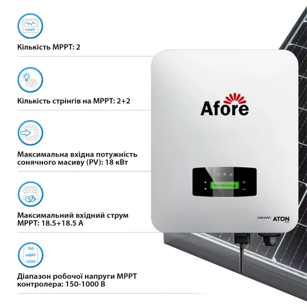 Гібридний інвертор Afore Aton AF12K-MTH 12KW для трифазних систем із підтримкою високовольтних батарей