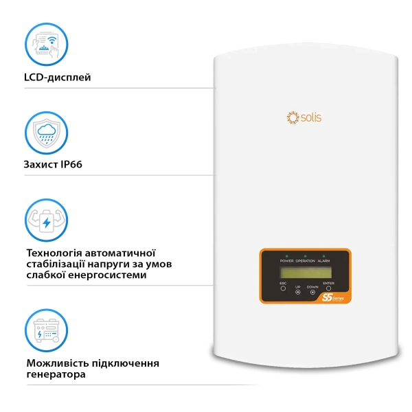 Інвертор Solis S5-GR3P10K обладнаний трифазним виходом, що працює при напрузі 220/380V. Це забезпечує стабільне подання електроенергії та дозволяє використовувати його на промислових та комерційних об'єктах, де потрібне трифазне живлення. Чиста синусоїда на виході гарантує сумісність з будь-якими електроприладами та обладнанням.