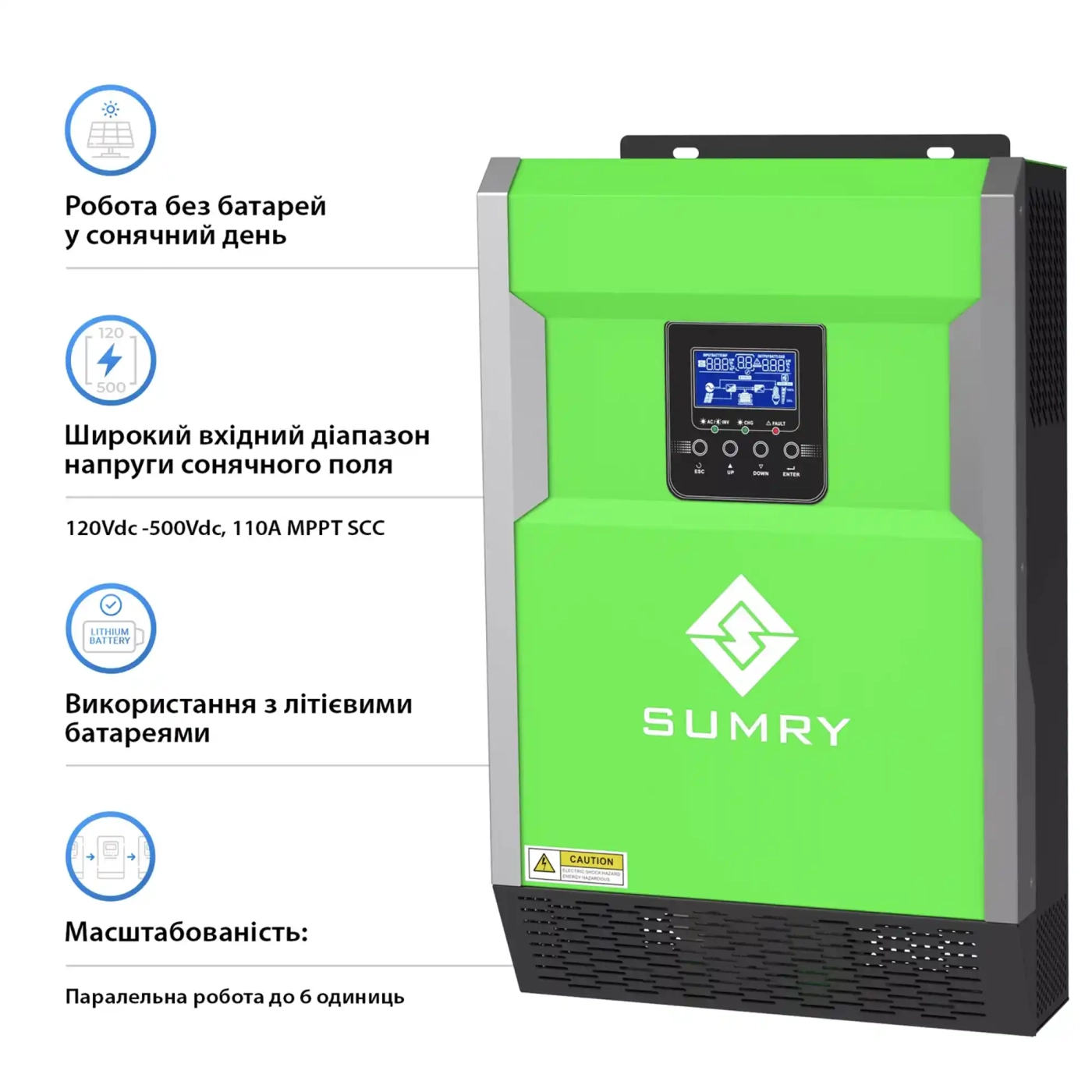 Не пропустіть можливість придбати цю передову систему зберігання енергії прямо зараз! Купіть SUMRY HGP-5500W-2DE10.24K-LFP-W у Києві з доставкою по всій Україні за вигідною ціною, замовивши на сайті інтернет-магазину Solarverse!