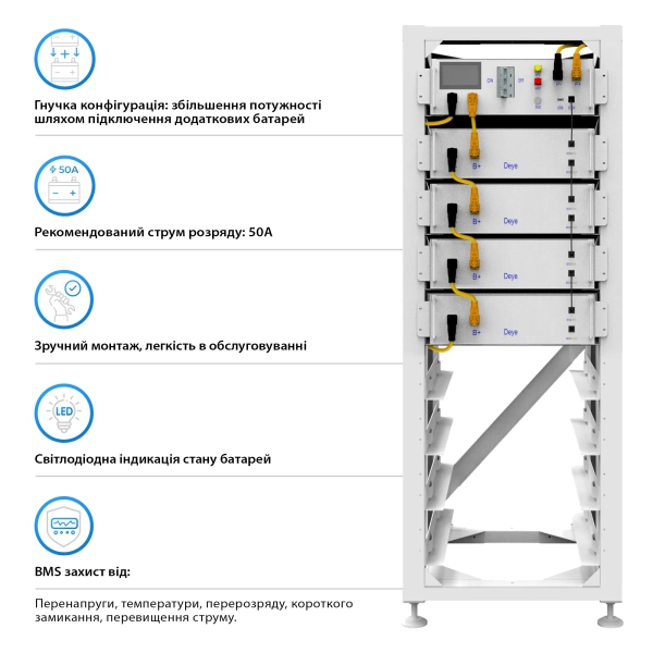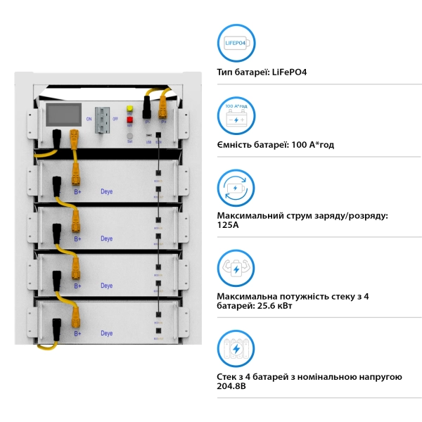 Система зберігання енергії DEYE SUN-10K-SG01HP3-EU-AM2-BOS-G4-20.48kW-LFP 10kW 20.48kWh 1BAT LiFePO4 6000 циклів