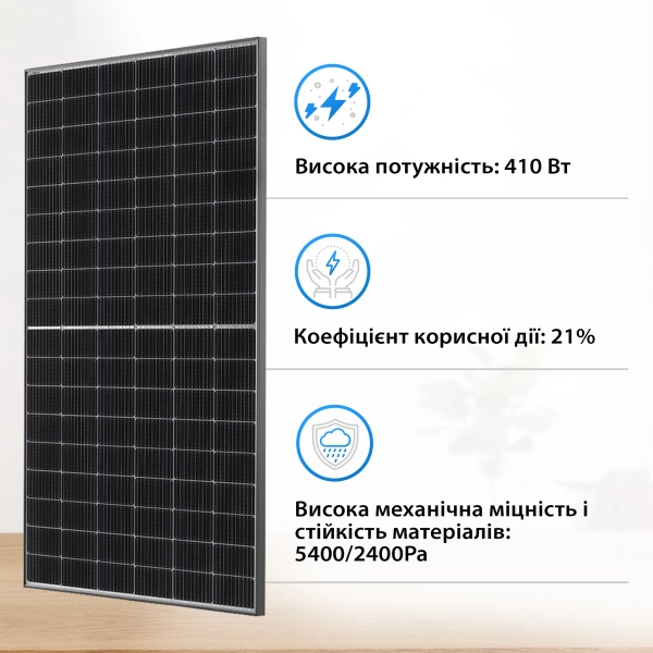 У світі постійного зростаючого попиту на енергію, монокристалічна сонячна панель Tongwei Solar TW410MAP-108-H-S стає надійним і ефективним рішенням для гібридних, автономних або мережевих станцій. Її висока потужність, що досягає 410 Вт, поєднується з коефіцієнтом корисної дії фотомодуля на рівні 21.0 %, що забезпечує ефективне використання в найрізноманітніших системах.