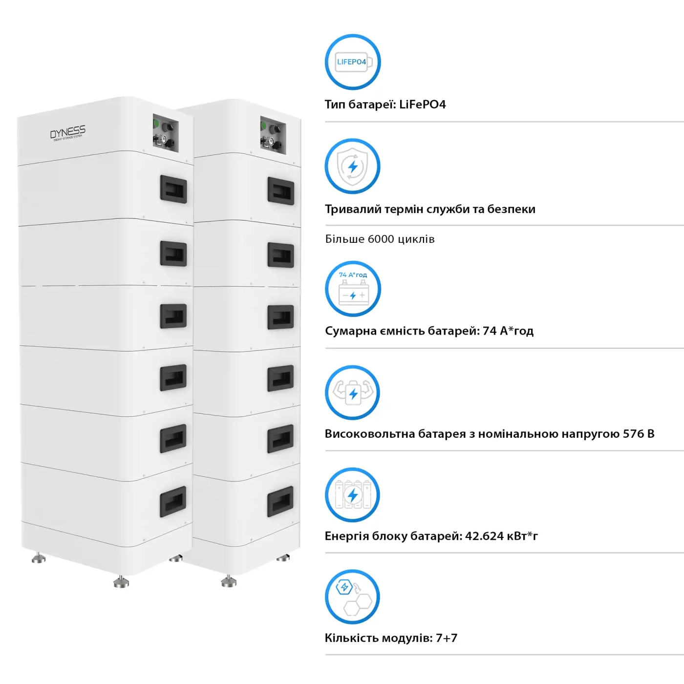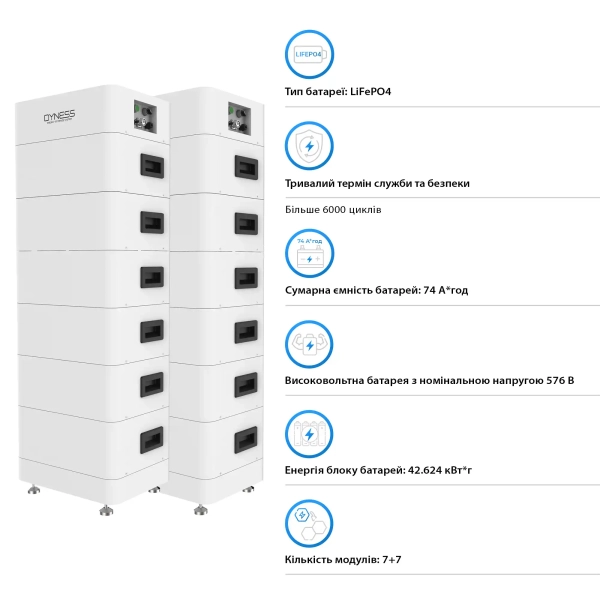Эта система имеет суммарную емкость батарей в 74 Ач и хранит энергию до 42.264 кВтч. Батареи изготовлены по технологии LiFePO4, что гарантирует длительный срок службы — до 6000 циклов. Это делает систему особенно выгодной для долгосрочного использования. 🔋✨