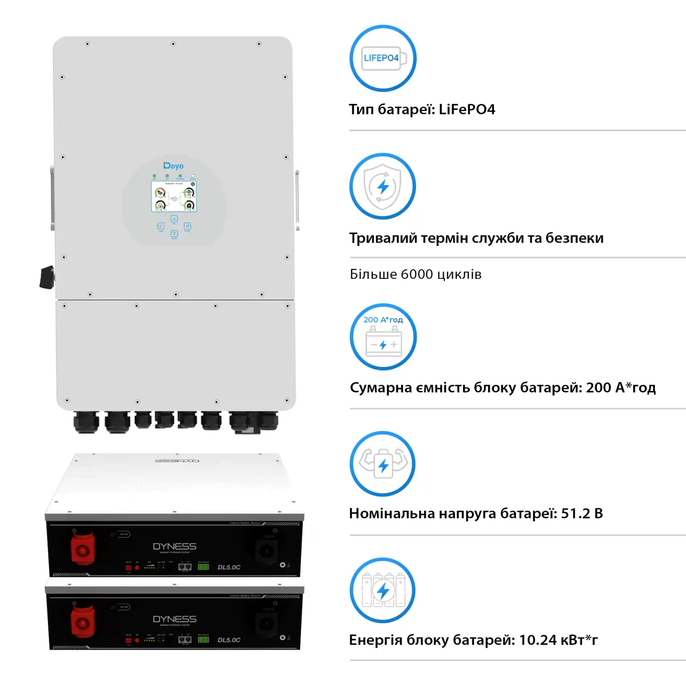 Система хранения энергии Deye SUN-5K-SG03LP1-EU-2DY10.24K-LFP-W 5kW 10.4kWh 2BAT LiFePO4 6000 циклов