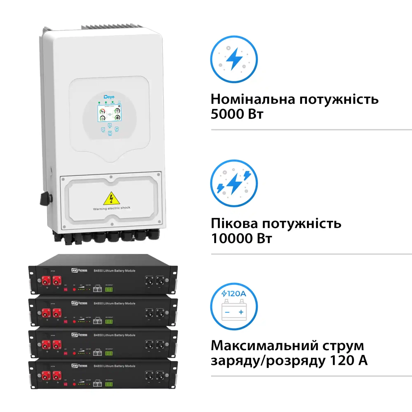 Купить систему хранения энергии Solarverse 5kW-DEYE 9.6kWh-Dyness 4BAT LiFePO4 по отличной цене в Украине, можно в нашей интернет-магазине. Мы предлагаем выгодные условия покупки, быструю доставку по Киеву и другим городам, а также подробные фото и отзывы от наших клиентов. Закажите прямо сейчас и получите надёжное решение для вашего энергоснабжения!