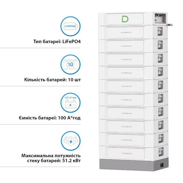 Блок батарей Dyness STACK100 LiFePO4 10xS51100 512V 100Ah 51kWh з BMS