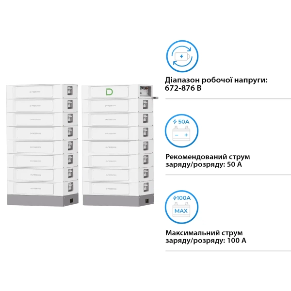 При підключенні та експлуатації важливо дотримуватися всіх рекомендацій щодо температурних режимів і навантаження на батарею. Рекомендуємо використовувати модуль в межах вказаного діапазону робочої напруги (672-876 V) для максимальної ефективності та безпеки.