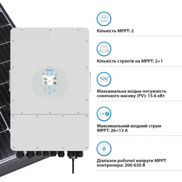 🌞 DEYE SUN-12K-SG04LP3-EU – це надійне рішення для вашого будинку або дачі, що дозволяє максимально ефективно використовувати сонячну енергію та забезпечувати безперебійне трифазне електроживлення. Ось чому він заслуговує на вашу увагу: