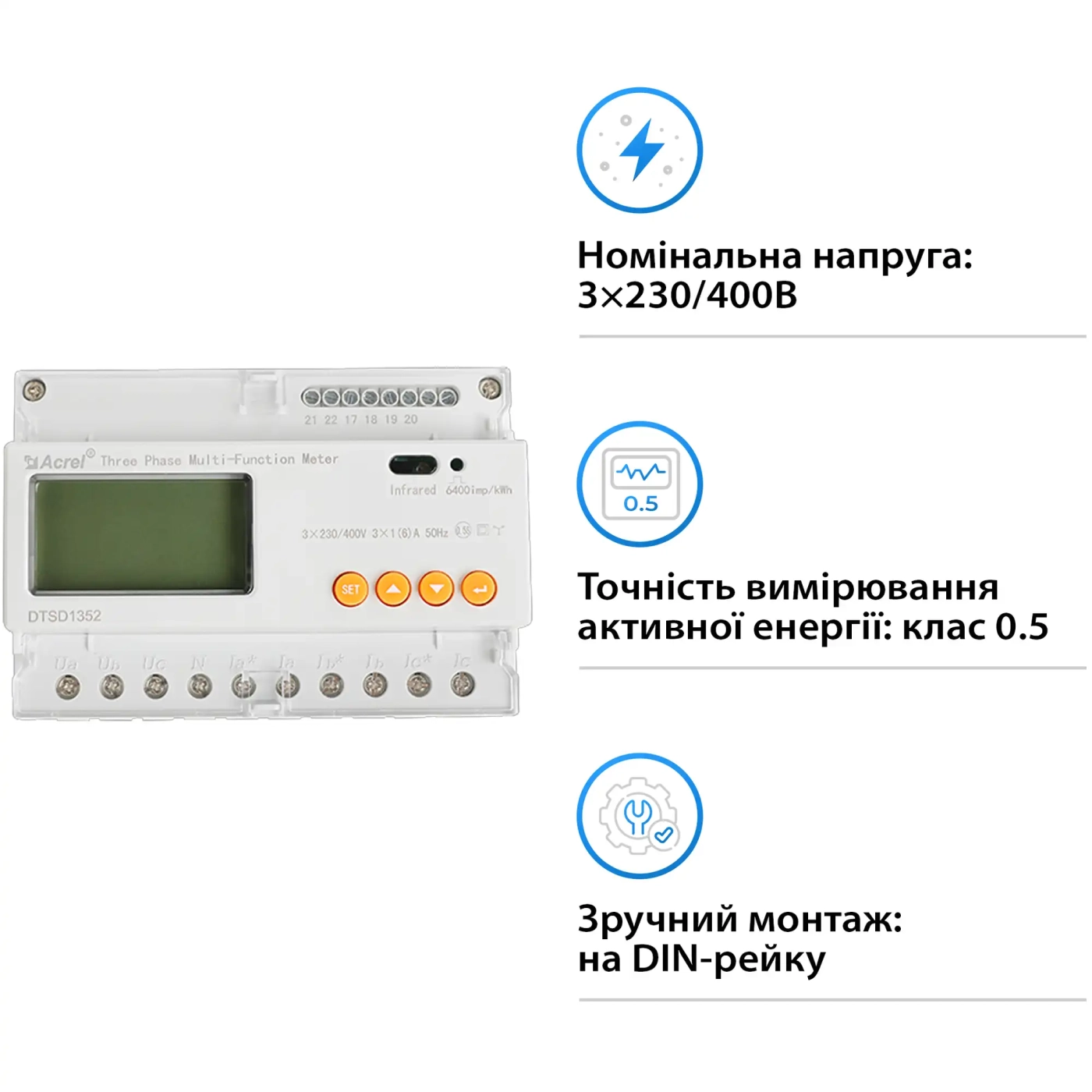Лічильник Sungrow DTSD1352-C/1 (6)A 3-PHASE METER 230/400V — купити за вигідною ціною