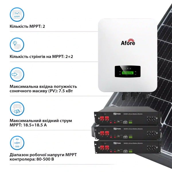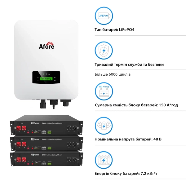 Система зберігання енергії Afore AF5K-SL-3DY7.2K-LFP 5kW 7.2kWh 3BAT LiFePO4 6000 циклів