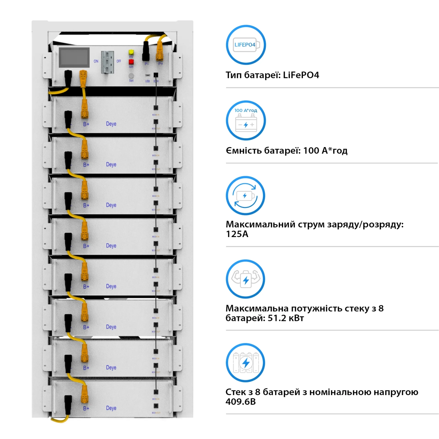 Система зберігання енергії DEYE SUN-30K-SG01HP3-EU-BM3-BOS-G8-40.96kW-LFP 30kW 40.96kWh 1BAT LiFePO4 6000 циклів