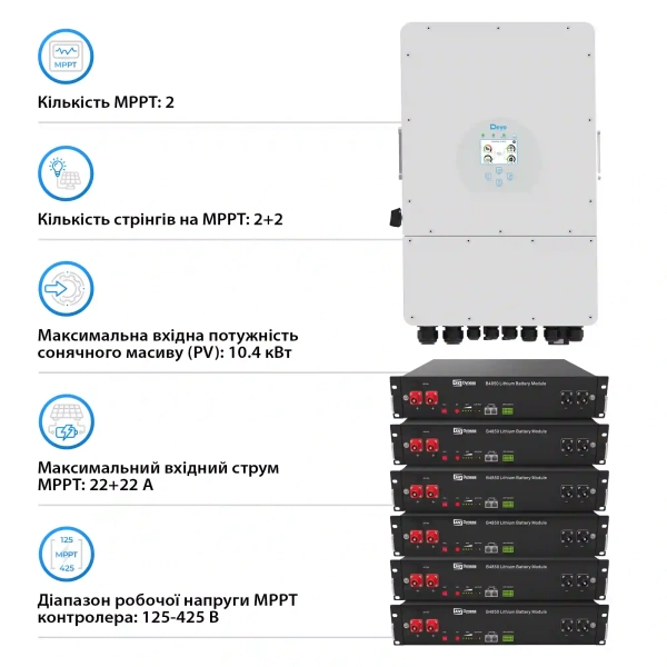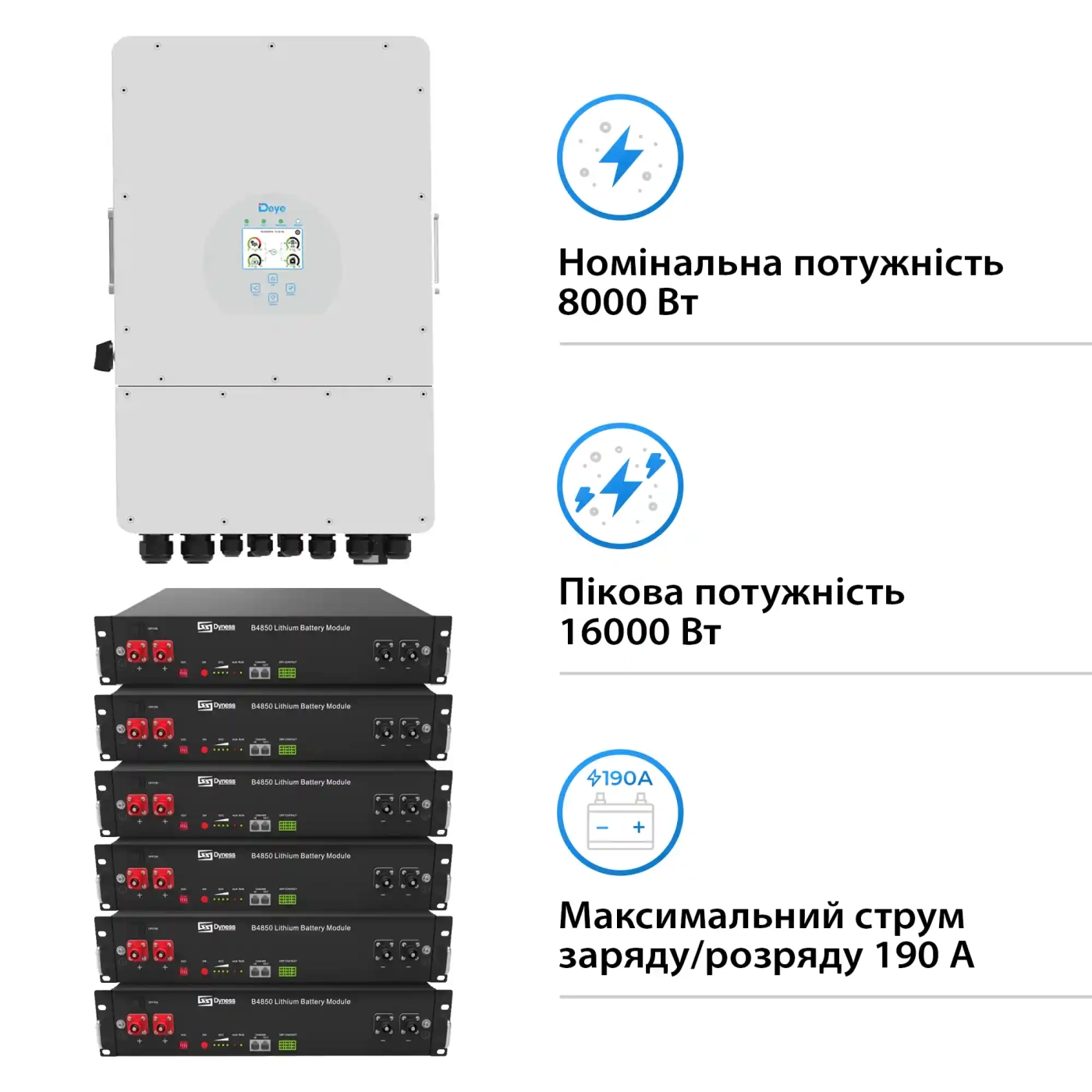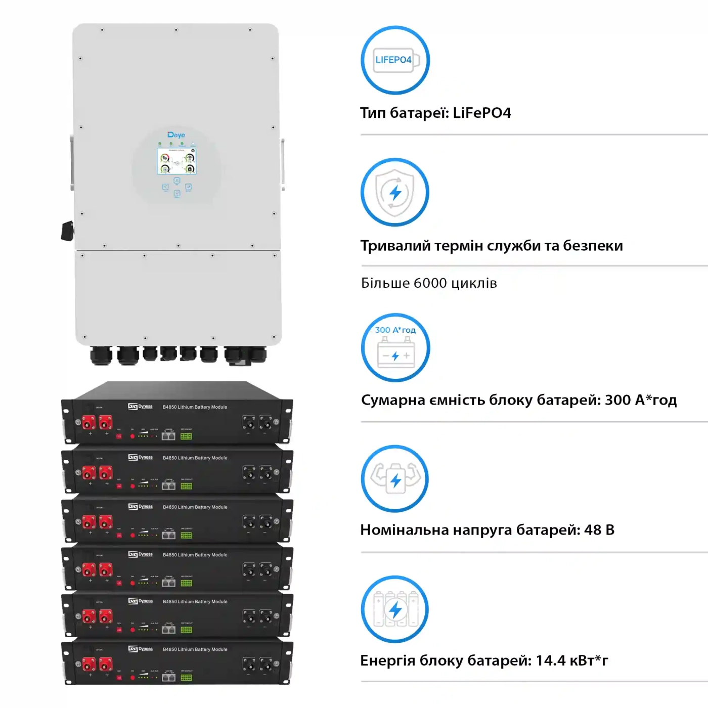 Система зберігання енергії Deye SUN-8K-SG01LP1-EU-6DY14.4K-LFP 8kW 14.4kWh 6BAT LiFePO4 6000 циклів