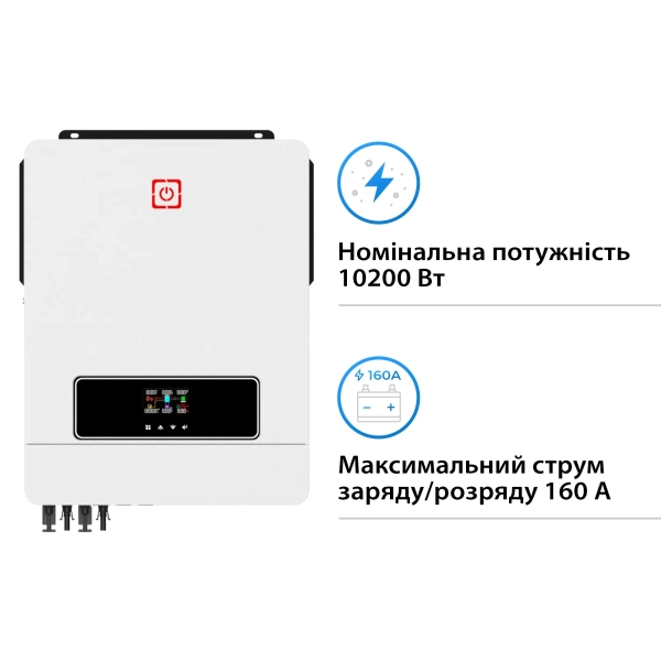 - Вбудований сонячний зарядний пристрій 160A MPPT (для 8,2 кВт, 10,2 кВт)