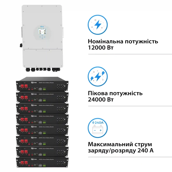 Система зберігання енергії Solarverse 12kW-DEYE 19.2kWh-Dyness 8BAT LiFePO4 6000 циклів (SVR24-3DE12K1-LDY19.2K1-0)