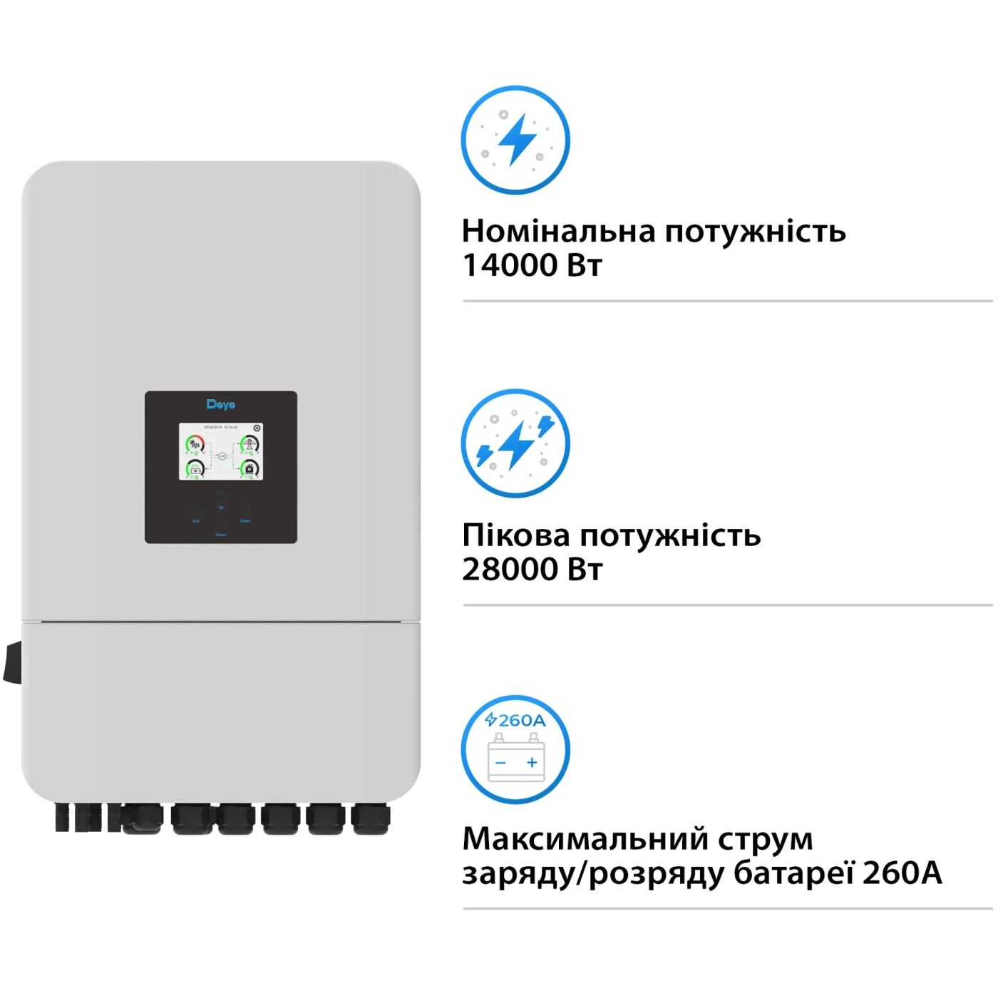 Сучасне життя вимагає стабільного та розумного підходу до енергоспоживання. Коли звичайна мережа дає збій, на допомогу приходить система зберігання енергії Solarverse SUN-14K-SG05LP3-EU-4DY20.48K-LFP-W — високоефективний гібридний комплект, що поєднує потужний інвертор та чотири довговічні літій-залізо-фосфатні батареї. Це рішення створене для тих, хто цінує енергонезалежність, безпеку та контроль над власними ресурсами. Воно підходить як для приватних будинків, так і для комерційних об'єктів.
