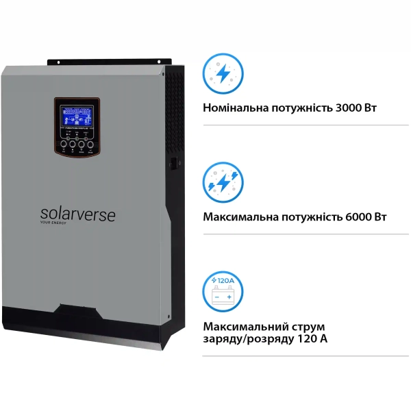 Solarverse SV3024A-1GS5.12K-LFP доступна до замовлення в Україні за актуальною ціною: ви можете замовити комплект із доставкою до Києва та інших міст; на сторінці товару розміщені відгуки клієнтів і реальні фото, що допомагають прийняти рішення. Це практичне рішення для тих, хто цінує автономність і прозору економіку володіння: можливість замовити онлайн, переглянути фото й відгуки — усе, щоб упевнено перейти на сталу енергетику без компромісів.