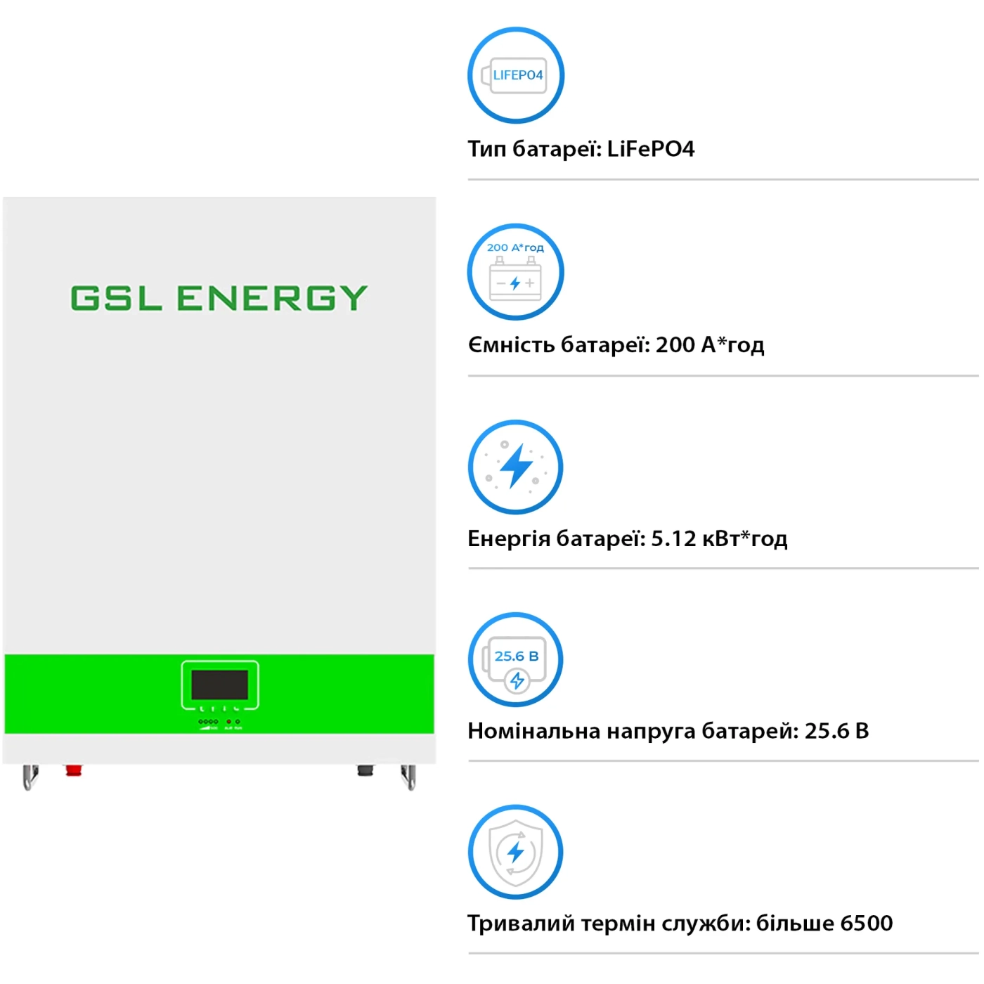 Коли дому чи бізнесу потрібна передбачувана потужність, система зберігання енергії Solarverse SV3024A-1GS5.12K-LFP перетворює нестабільну реальність на контрольовану. Це готовий автономний комплекс з інвертором на 3 кВт і батареєю LiFePO4 ємністю 5.12 кВт·год, який виступає «енергетичним щитом»: ви вирівнюєте пікові навантаження, страхуєте критичні споживачі та раціонально використовуєте сонячну генерацію. В основі — безпечна хімія LiFePO4 з ресурсом до 6500 циклів, чиста синусоїда для чутливої техніки та продумана електроніка, що працює, поки ви займаєтеся головним — справою і життям.