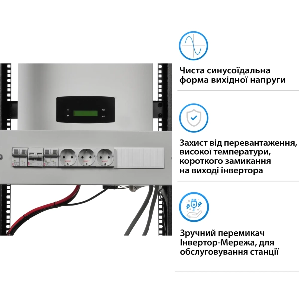 Загальна ємність блоку батарей становить 300 Ah, що еквівалентно зберіганню 14.4 kWh енергії. Така конфігурація дозволяє системі забезпечувати тривале автономне енергопостачання та ефективне управління навантаженням.