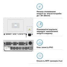 Ще однією важливою перевагою даного інвертора є наявність 8 трекерів максимальної потужності (MPP), що дозволяє підключати до 32 сонячних модулів та оптимально використовувати сонячну енергію. Широкий діапазон робочої напруги постійного струму від 200 до 1000 В робить його сумісним із різними сонячними панелями та забезпечує гнучкість у проектуванні сонячних систем.