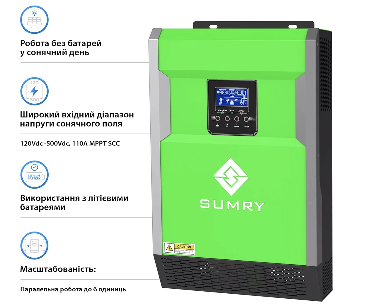 Інноваційні технології та висока якість інвертора SUMRY забезпечать безперебійну роботу ваших електроприладів, а компактний дизайн та висока енергоефективність батареї Deye зроблять її ідеальним рішенням для будь-якого простору.