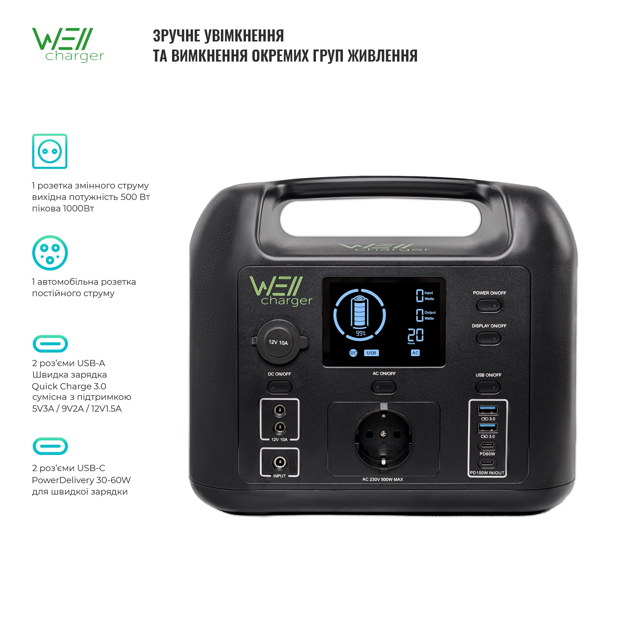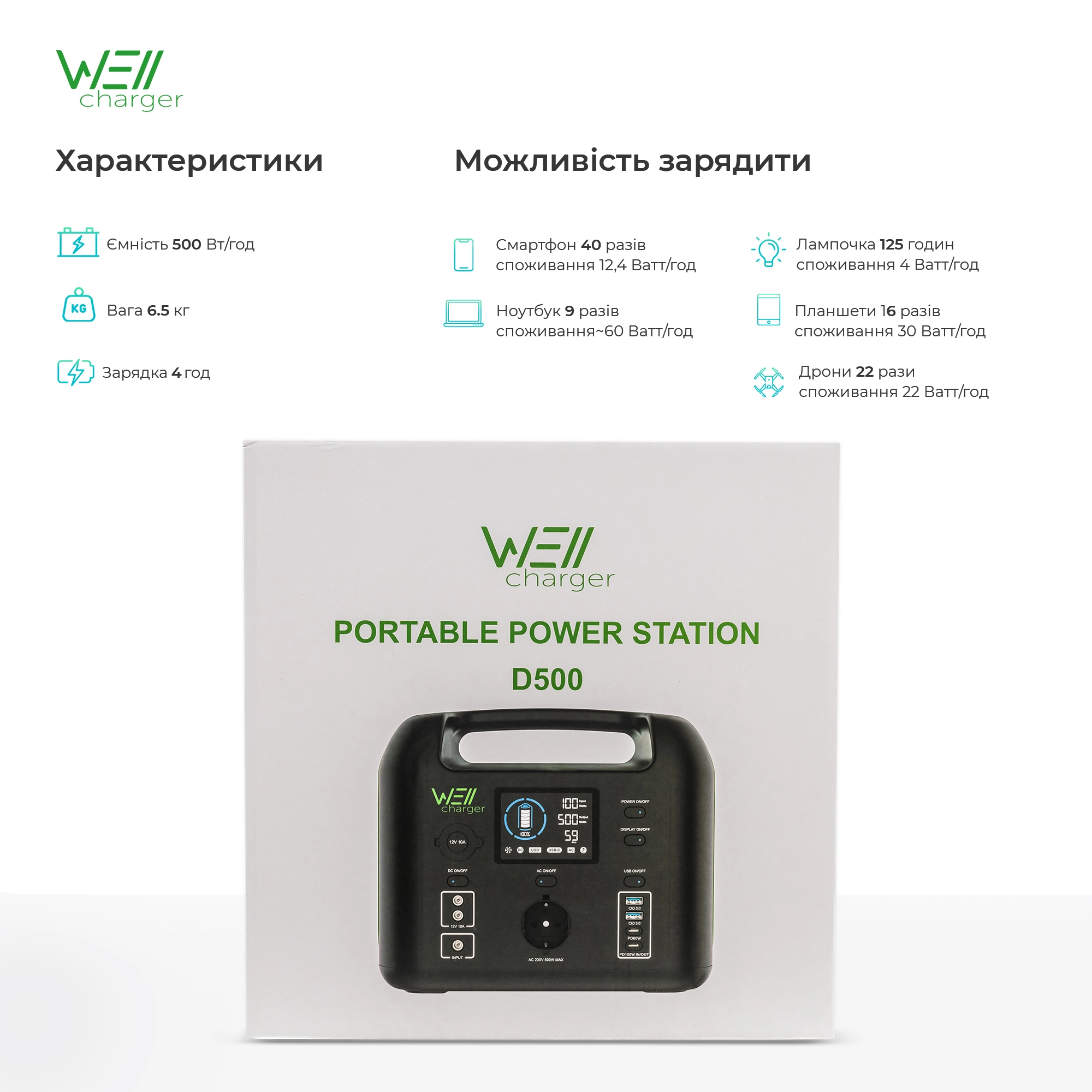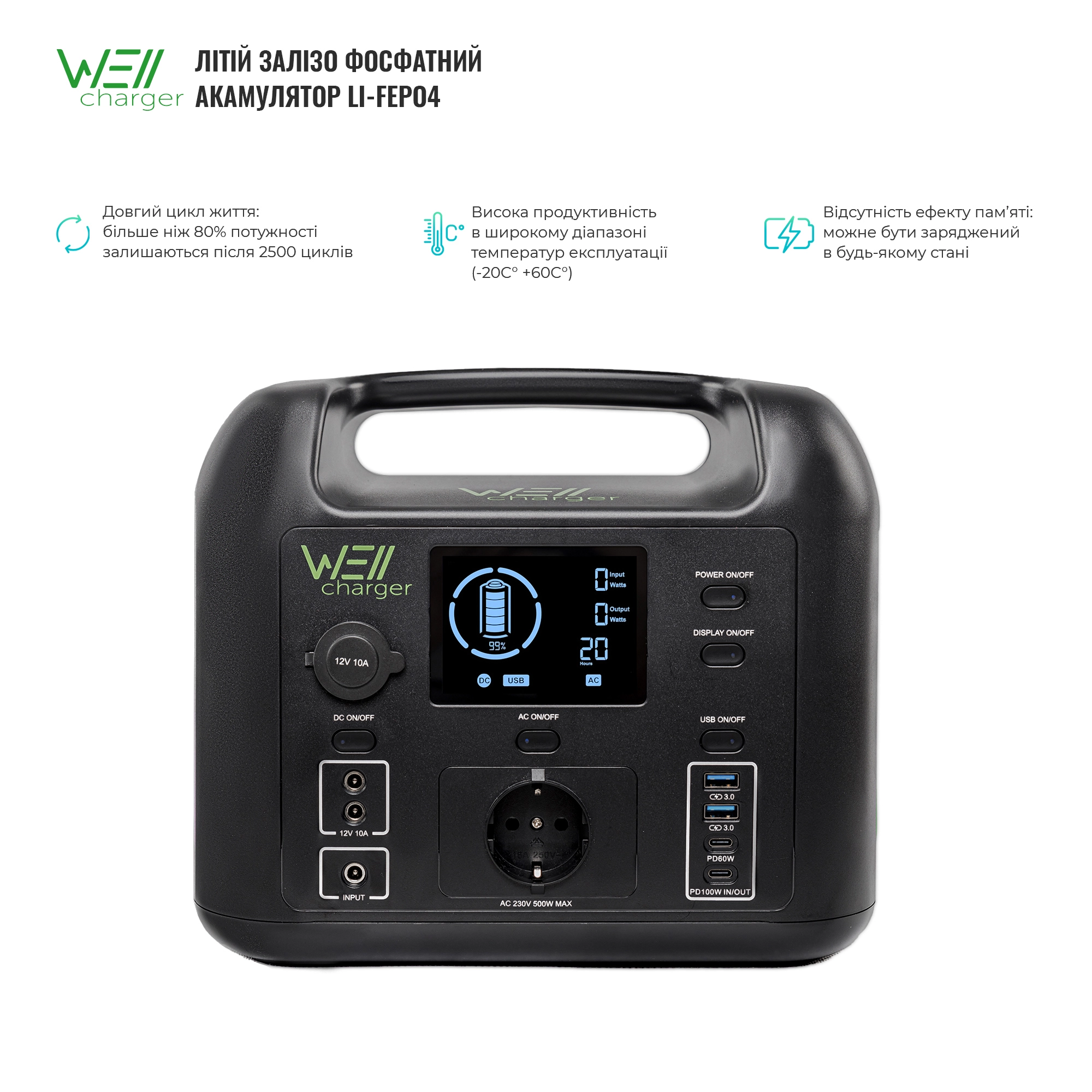 Надійний супутник для вашої енергії за будь-яких умов: Купити WellCharger D500 500W 518Wh