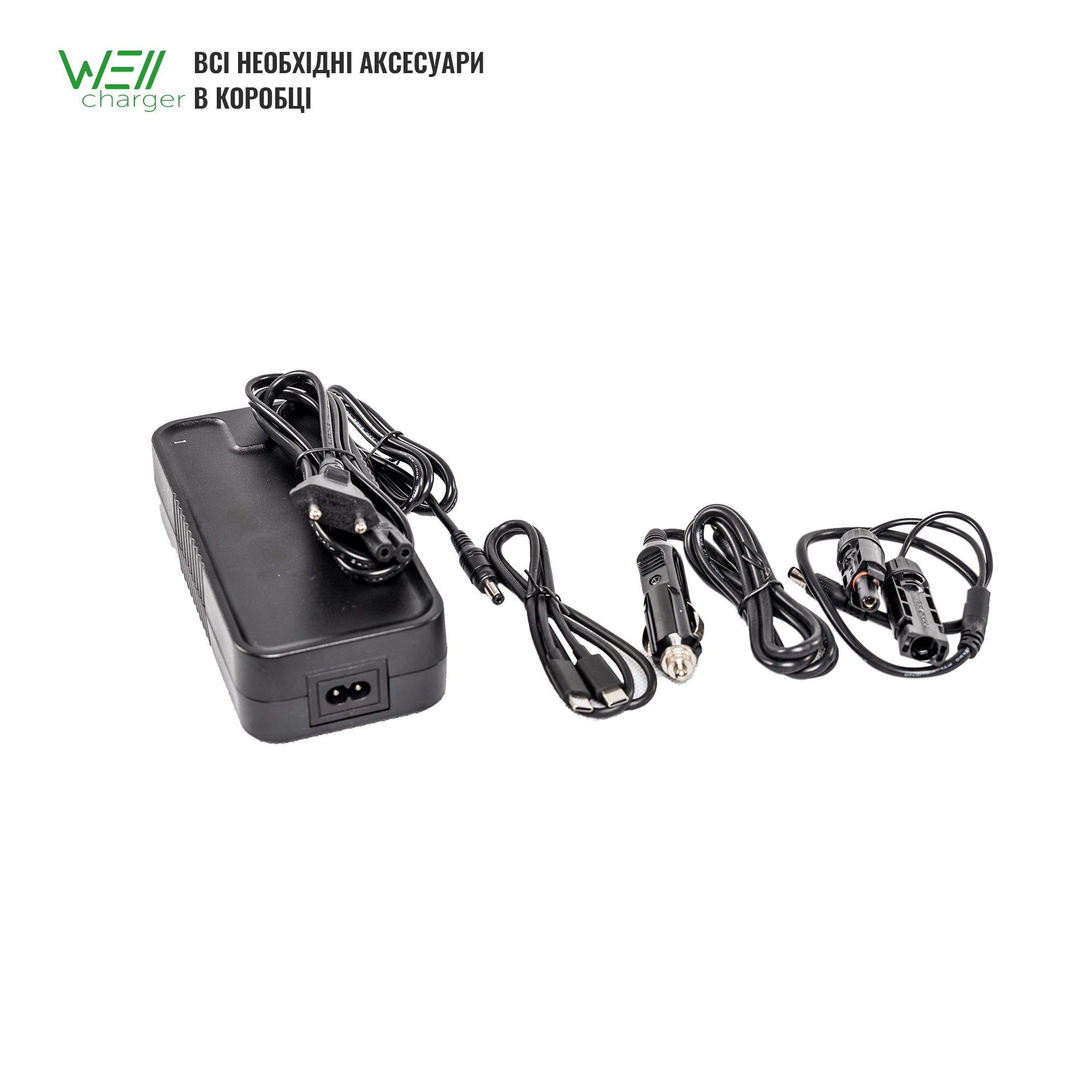- Багато інтерфейсів: Зарядна станція забезпечена різноманітними портами для заряджання різних пристроїв, включаючи смартфони, ноутбуки, LED-лампи, планшети, дрони та інші. Все це в одному компактному пристрої.