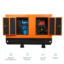 Скорость вращения на уровне 1500 оборотов в минуту обеспечивает надежную работу и эффективное использование топлива. Система охлаждения водным методом гарантирует стабильную эксплуатацию даже при высоких температурах окружающей среды до 50°C.
