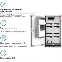 - Связь и контроль: BMS, CAN/RS485, TCP/IP, LCD-дисплей.