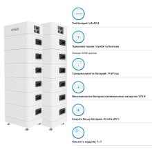 Эта система имеет суммарную емкость батарей в 74 Ач и хранит энергию до 42.264 кВтч. Батареи изготовлены по технологии LiFePO4, что гарантирует длительный срок службы — до 6000 циклов. Это делает систему особенно выгодной для долгосрочного использования. 🔋✨