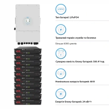Мощность и емкость: Суммарная емкость блока батарей составляет 24 кВтч, что позволяет хранить значительное количество энергии для различных нужд. Номинальная мощность инвертора в 12 кВт обеспечивает стабильное энергоснабжение даже при высоких нагрузках.