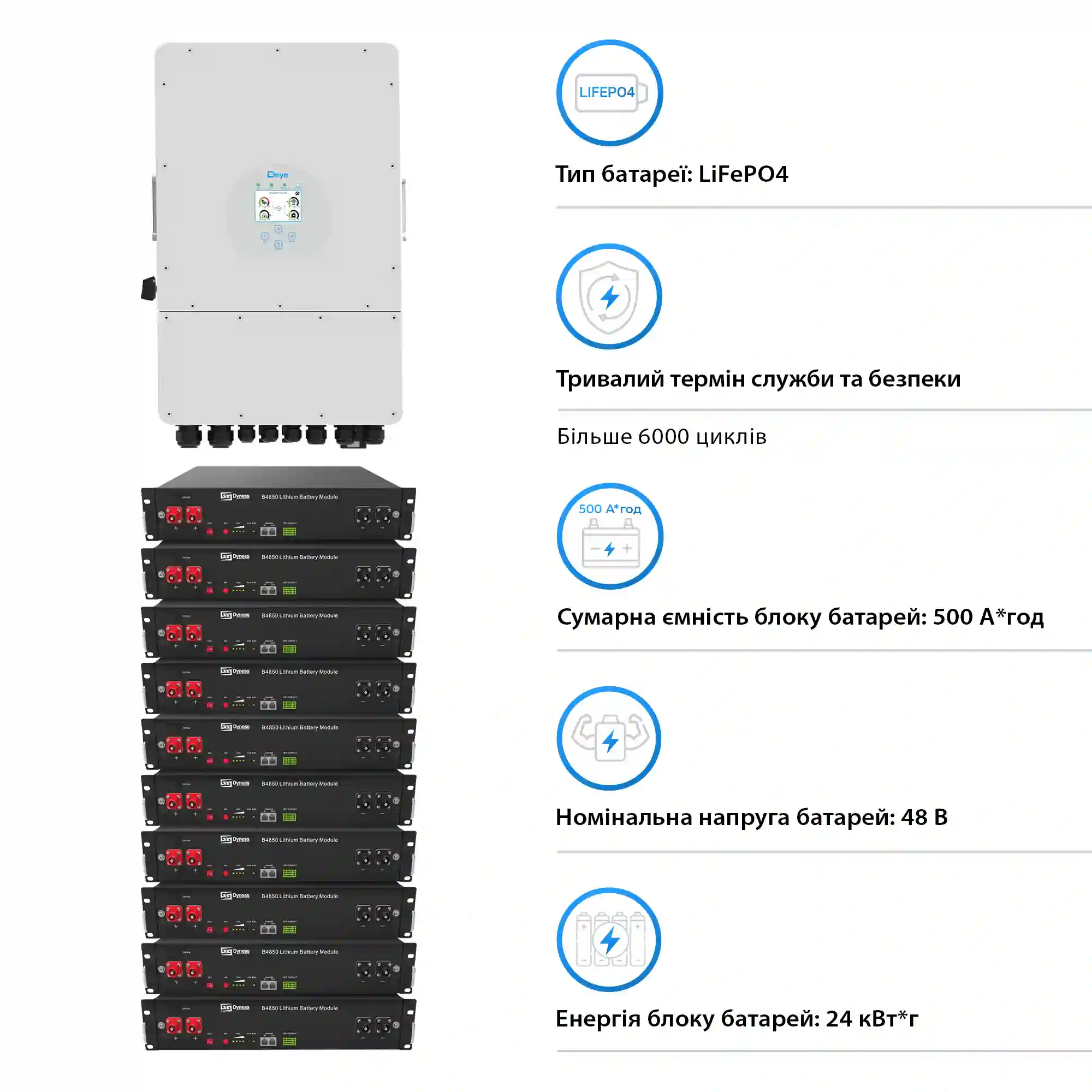 Купить систему хранения энергии DEYE SUN-12K-SG04LP3-EU-10DY24K-LFP-R по выгодной цене в Украине