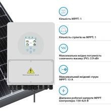 Оснащенная одной фазой и одним MPPT, система обладает максимальной входной мощностью солнечного массива до 3.9 кВт, гарантируя оптимальное собирание солнечной энергии. Суммарная емкость блока батарей составляет 230 Ач, что обеспечивает надежное и стабильное хранение энергии на протяжении долгого времени.