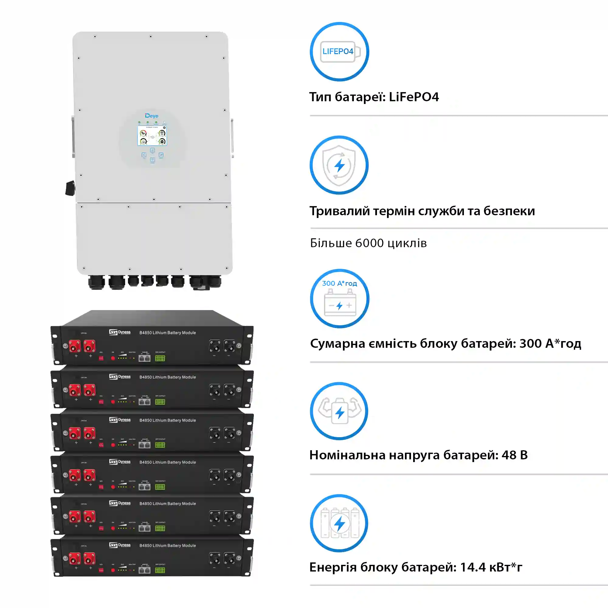 Купить Систему хранения энергии Solarverse 12kW-DEYE 14.4kWh-Dyness 6BAT LiFePO4 6000 циклов (SVR24-3DE12K1-LDY14.4K1-0) по лучшей цене