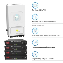 Купить систему хранения энергии Solarverse 5kW-DEYE 9.6kWh-Dyness 4BAT LiFePO4 по отличной цене в Украине, можно в нашей интернет-магазине. Мы предлагаем выгодные условия покупки, быструю доставку по Киеву и другим городам, а также подробные фото и отзывы от наших клиентов. Закажите прямо сейчас и получите надёжное решение для вашего энергоснабжения!