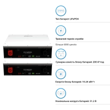 Батареи LiFePO4 обладают длительным сроком службы – до 6000 циклов, что гарантирует долгую эксплуатацию и надежное электропитание на годы вперед. Номинальное напряжение 51,2 В и возможность работы в режиме резервного питания делают систему идеальным решением для резервного электропитания.