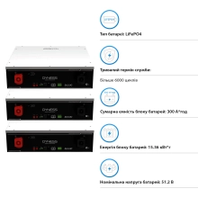 В комплект входят три высококачественные батареи типа DL5.0C на основе LiFePO4. Их суммарная емкость составляет 300 Ач, что эквивалентно 15.36 кВт·ч, а жизненный цикл достигает 6000 циклов. Эти батареи могут полностью зарядиться всего за 1.8 часа при максимальном токе заряда 190 А. Такое решение обеспечивает быструю и эффективную зарядку, чтобы вы всегда были уверены в наличии необходимой энергии. 🔋⚡