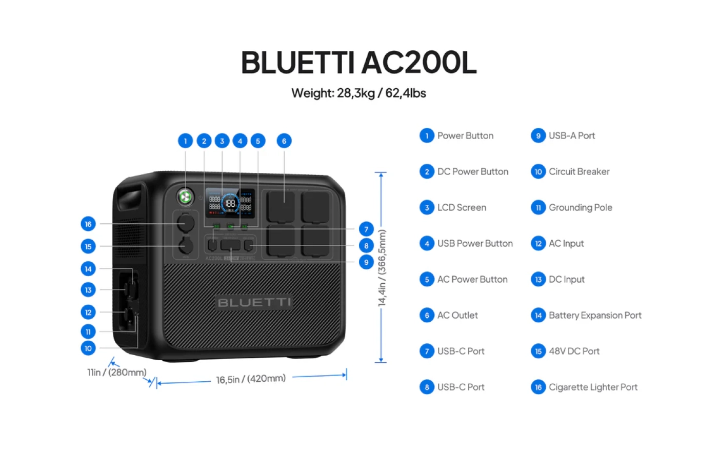 Bluetti AC200L – это современная портативная зарядная станция, способная обеспечить энергией даже в самых сложных условиях. Обладая емкостью 2048Втч и мощностью 2400Вт, она идеально подходит для походов, кемпинга, аварийных ситуаций и любых задач, где требуется независимое электропитание.