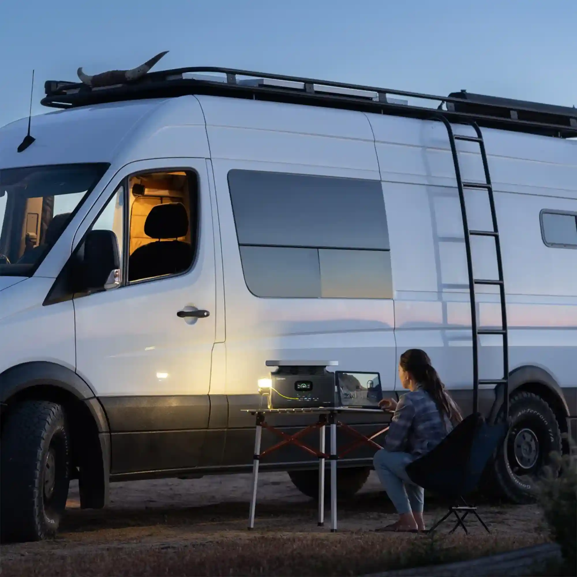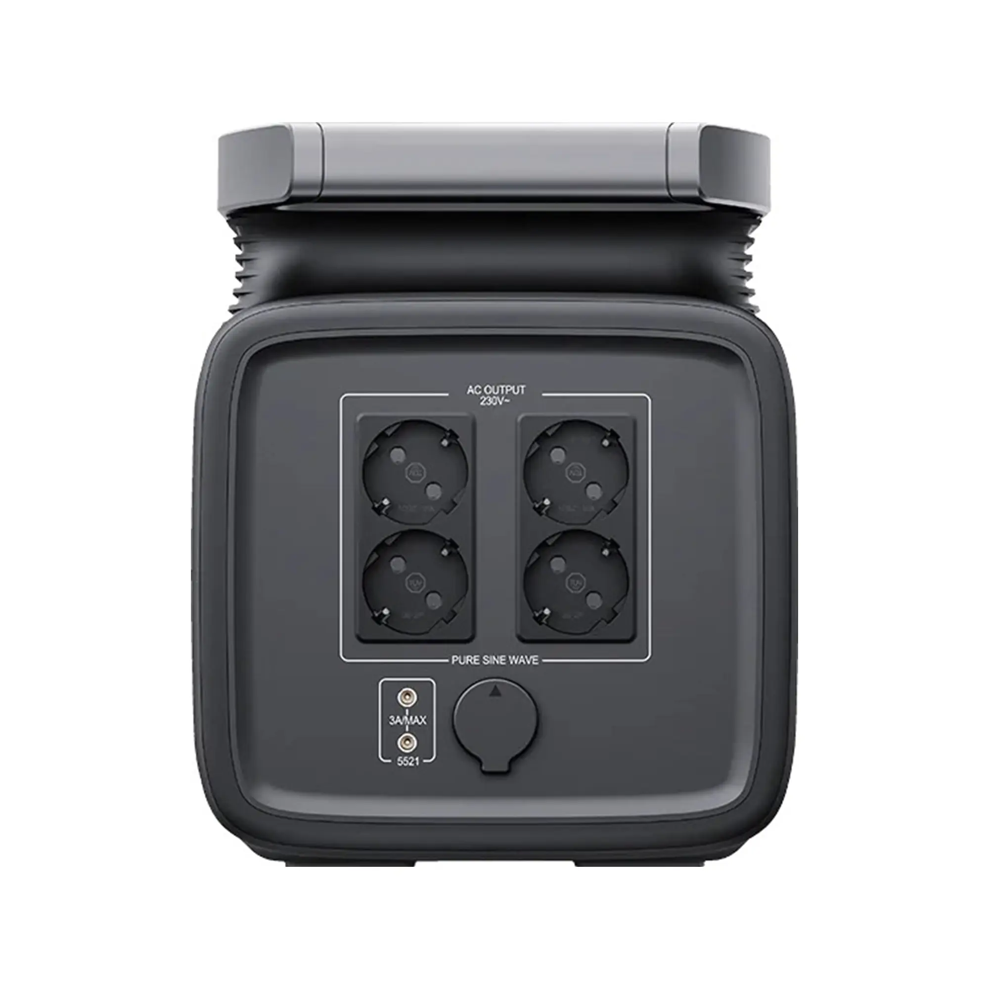 Зарядная станция оснащена двойной ручкой для удобной переноски и плоской верхней панелью, что упрощает её хранение. Благодаря адаптивной системе охлаждения, вентилятор регулируется автоматически в зависимости от нагрузки, обеспечивая тихую работу даже при высоких нагрузках. Это идеальный выбор для использования как в помещении, так и на открытом воздухе. 🌍