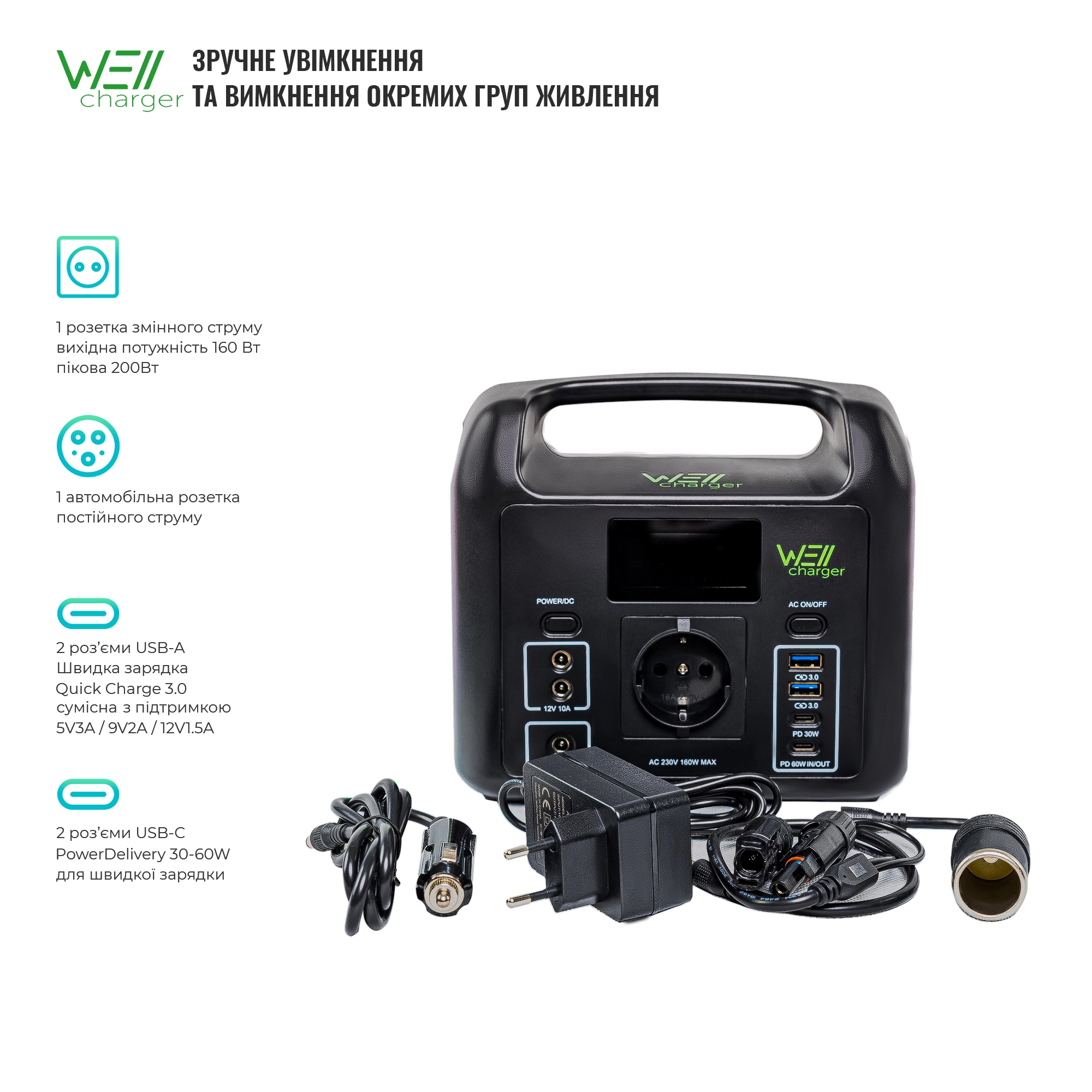 Купить WellCharger D150 160W 204Wh: Надежное устройство для зарядки ваших портативных гаджетов.