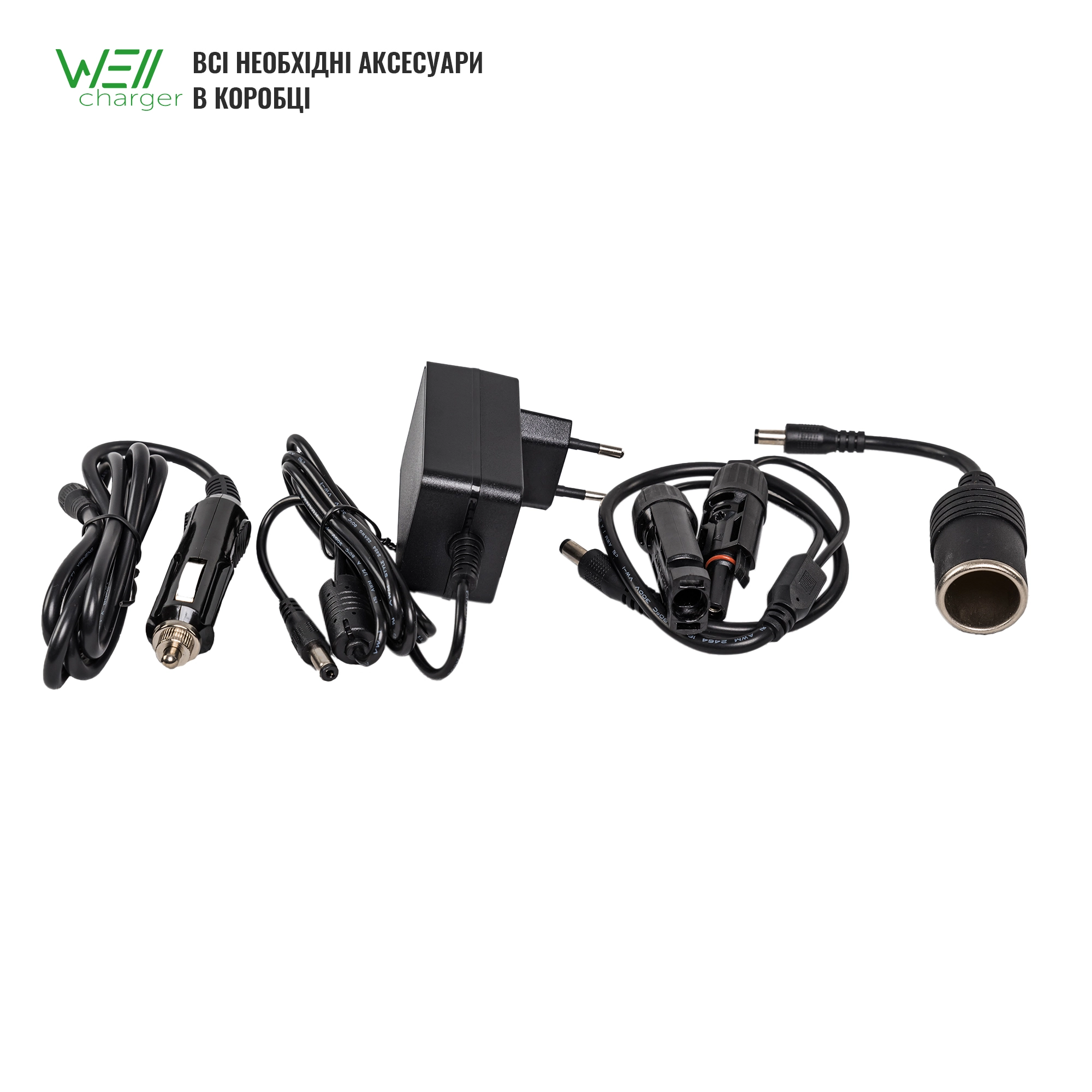 В комплекте с зарядной станцией идут все необходимые аксессуары для зарядки различных устройств.